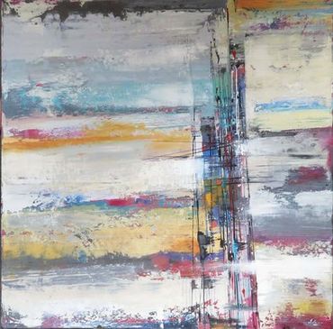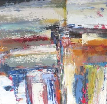 THE PAINTINGS OF PIETRO ADAMO ARE ABSTRACT CELEBRATIONS OF THE ARTIST'S ADMIRATION FOR THE "UNPREDICTABLE AND INEXHAUSTIBLE RECORD OF LIFE". HE ABANDONS THE MONOTONY OF CONVENTIONAL RENDERING OF GEOMETRIC FORMS THROUGH HIS TEXTURED SURFACES AND ROUGH CONTOURS. IN HIS PASSION TO CONVEY EMOTION, PIETRO ADAMO INTIMATELY WORKS HIS CANVASES BOTH APPLYING AND REMOVING PIGMENT TO CREATE A TACTILE QUALITY. LAYER UPON LAYER OF VIBRANT COLOURS DYNAMICALLY EMERGE AND RECEDE WITHIN THE CANVAS. THIS JUXTAPOSITION OF PRESENCE IS WHAT GIVES HIS WORK ITS MOOD AND SENSATIONAL QUALITY.